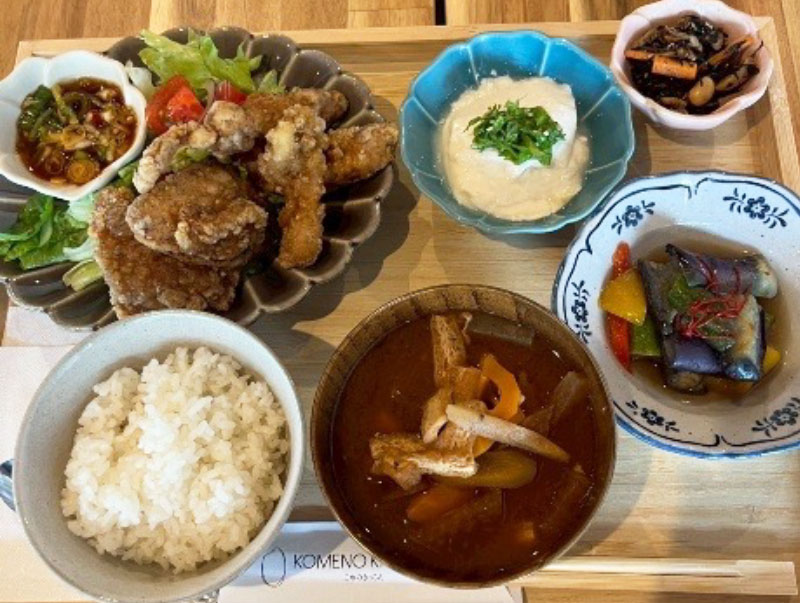 We are pleased to announce that our “Tofu Shop Mini” has been installed at KOMENO KITCHEN, a café where customers can enjoy dishes made with homegrown rice and vegetables. Not only freshly made tofu, but their homemade desserts such as chiffon cake etc. are also delicious and heartwarming.